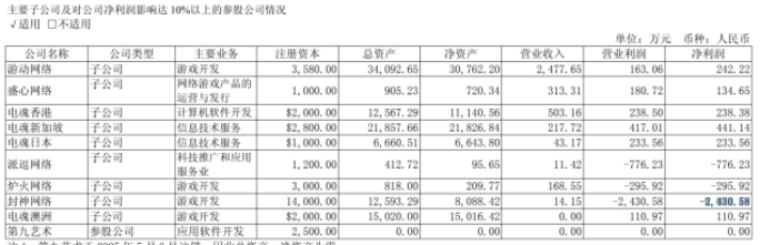 除游动网络之外,电魂网络全资子公司封神网络已出现较大程度的亏损。2024年及2025年上半年,该公司净亏损分别为3837.39万元、2430.58万元,在电魂网络众多参股及控股子公司中净利润表现最差。