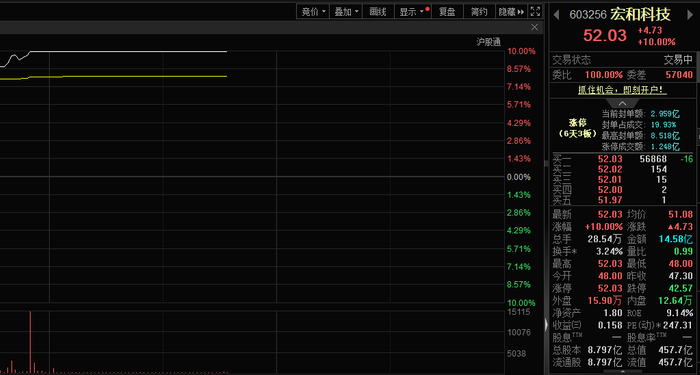 1月28日,宏和科技(603256)股价涨停,实现6天3板,截至发稿,封单金额近3亿元。