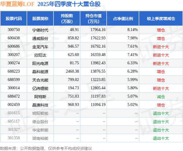 华夏蓝筹LOF的前十大重仓股如下: