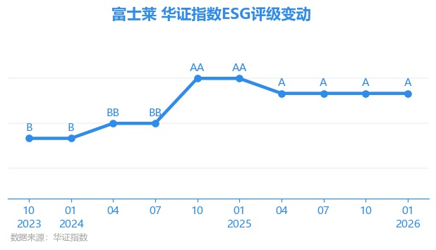 日前,华证指数公布了新一期(2026年1月31日)的ESG评级结果,富士莱(301258.SZ)获得A评级(华证指数评级为C起至AAA九档,C为最低档,AAA为其最高一级评级/AA为其第二档),上一期(2025年10月31日)ESG评级为A。本期ESG评级在265家制药行业A股上市公司中排名第34(上一期排名第37)。