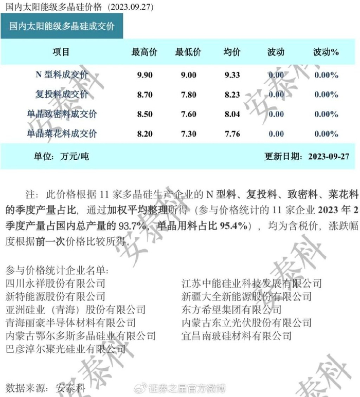9月27日,通威股份发布公告称,公司召开董事会审议通过了终止2023年度向特定对象发行股票事项。