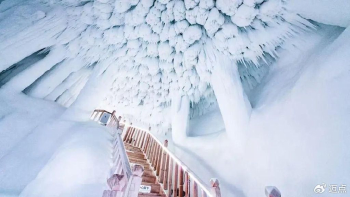 云丘山景区坐拥世界上罕见的超大冰洞群,已探明发现14个冰洞群。据中国科学院地质与地球研究所、研究员陈诗才教授考证,冰洞群形成于第四纪冰川期,距今已有300多万年的历史。目前正式对外开放的1号冰洞群,由11个洞腔组成,洞内总长199米,最宽处有12米,最高有15米。洞体四壁结冰,冰柱、冰笋、冰钟乳、冰石花以及其他冰晶景观结构遍布整个空间,大大小小的冰凌、冰瀑晶莹剔透,在五彩灯光的映照下如梦如幻,宛如冰雪的童话世界。