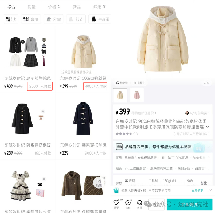 东鲸岁时记是一个新锐女装品牌,成立于 2020 年,2022 年便在得物做生意,如今 3 年过去,得物成为他们最重要的渠道之一。