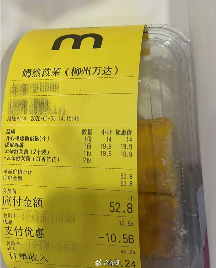 1月9日,消费者程敏(化名)在社交平台反映,嫣然苡茉(柳州城中万达店)卖过期变质食品。1月11日中午,涉事的广西柳州城中万达广场回应称,门店已赔偿消费者500元。
