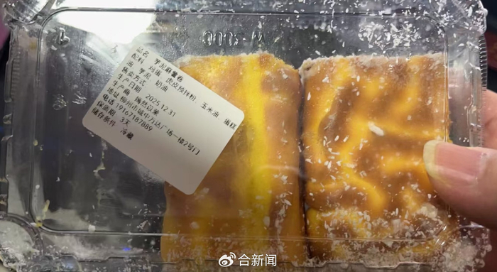芋泥麻薯卷的标签显示生产日期2025年12月31日,保质期3天,至购买当日已超期2天。“食用后尝到明显酸味,食品存在变质情况。”