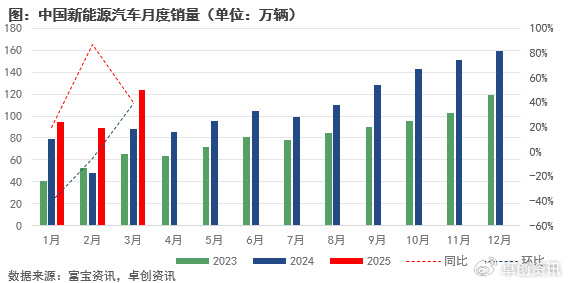 2. 电芯与终端:暂延续偏乐观看法数据层面,1-3月终端新能源汽车销量整体增速较佳,3月中国新能源汽车销量同比增加47.97%,3月新能源汽车月度渗透率42.4%。目前受美国关税影响最大的企业是宁德时代,其他企业受影响程度较小。受碳排法案影响,欧洲今年或有超预期装机需求,使得国内电芯厂的悲观情绪有所回暖,整体延续偏乐观看法。