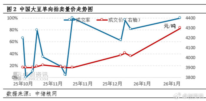 综上,26年的中国大豆市场,将在增产保量的背景下,以提高农民收入为重点,保障粮食安全,减少国外进口依存度。目前不断上调的国储拍卖价格,显示出较为明显的政策导向和市场预期,卓创资讯预计一季度国产大豆价格将有望继续走高,全国均价有望上涨至4800元/吨,较1月均价上调1.5%。