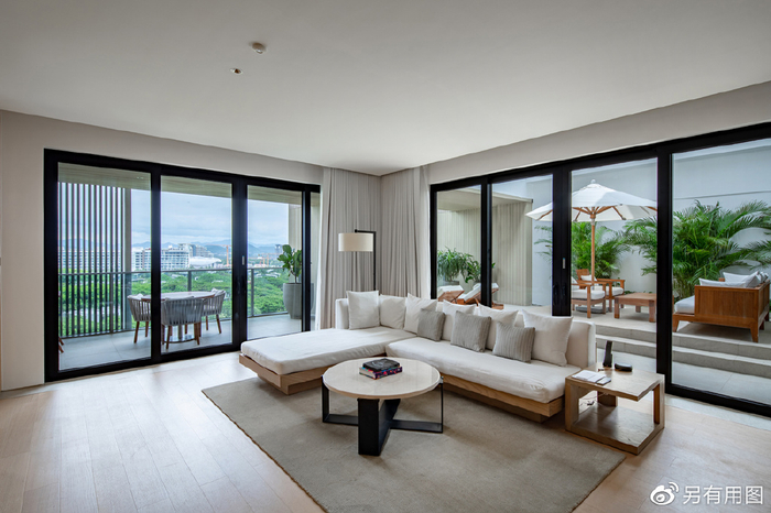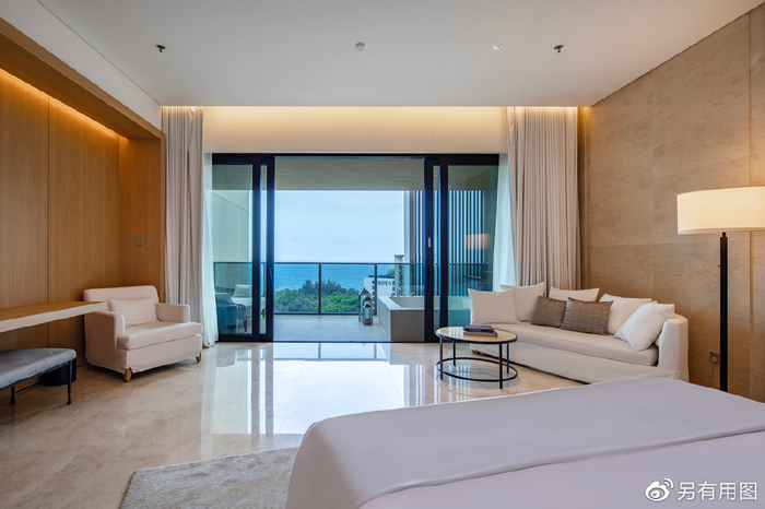 三亚艾迪逊酒店的客房,主打的也是一个简约时尚风格,每家艾迪逊的主题色,都采用品牌创始人伊恩·施拉格的“无色主题”。房间设计偏简约舒适但又不失典雅,房内空间宽敞明亮,圆顶纱帘环绕的大床、还设有室内独立大浴缸,在阳台上,也有一个观景浴缸。整体的设计风格,被誉为“全球最时髦酒店”。