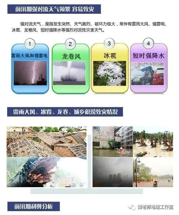 强对流天气是气象学上所指的发生突然、移动迅速、天气剧烈、破坏力极强的灾害性天气,主要有雷雨大风、冰雹、龙卷风、局部强降雨等。强对流天气发生于中小尺度天气系统,空间尺度小,一般水平范围大约在十几公里至二三百公里,水平尺度一般小于200公里,有的水平范围只有几十米至十几公里。谭老师地理工作室综合其生命史短暂并带有明显的突发性,约为一小时至十几小时,较短的仅有几分钟至一小时。它常发生在对流云系或单体对流云块中。强对流天气来临时,经常伴随着电闪雷鸣、风大雨急等恶劣天气,致使房屋倒毁,庄稼树木受到摧残,电信交通受损,甚至造成人员伤亡等。