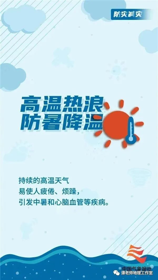 在气象上一般以日最高气温达到或者超过35℃作为高温的标准,“高温热浪”又叫高温酷暑,是一个气象学术语,通常是指持续多天的35℃以上的高温天气,由于高温持续时间较长,引起人、动物以及植物不能适应并且产生不利影响的一种气象灾害。高温热浪的标准主要依据高温对人体产生影响或危害的程度而制定。谭老师地理工作室综合整理