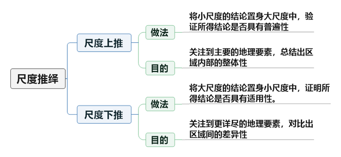 从宏观(大尺度)地理规律出发,关注微观(小尺度)的地方性分异(非地带性)。
