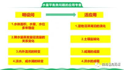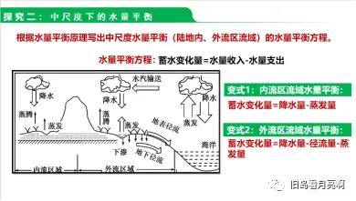 结语:水平衡原理是高考地理的一个热点问题,只要涉及水量平衡或变化的问题都可以用水平衡原理来分析。由平衡到失衡再到新的平衡是不断循环发展的过程,都涉及物质运动和能量交换的收入与支出,从“失衡”视角探究原因,从“促衡 ”方向寻求对策,这就是本篇的核心思想—“平衡”思维。但必须建立在准确理解的基础之上,理解稍有偏差,则谬之千里。