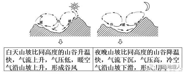 c迊风坡多地形雨,降水多落在半山腰;背风坡气流下沉较干热,产生焚风效应。
