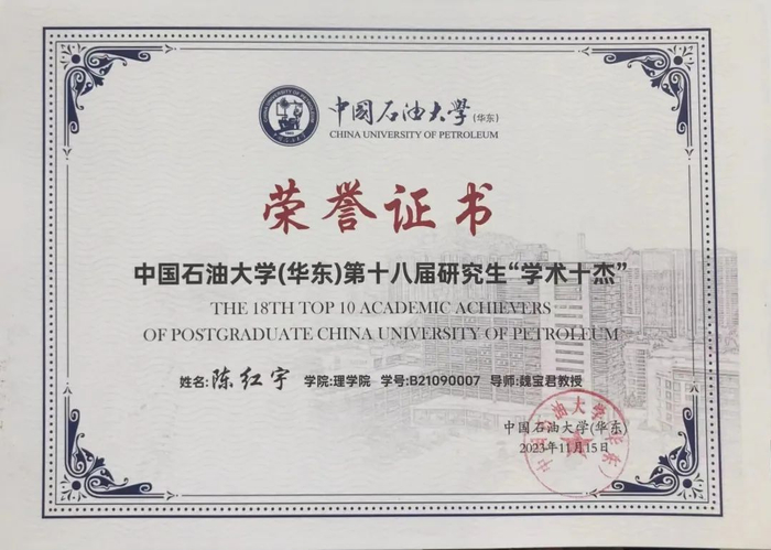 第21届中国石油大学校长奖得主陈红宇
