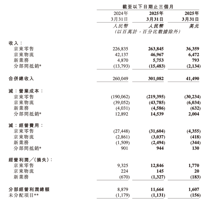 5月13日,京东集团公布了截至2025年3月31日止三个月的未经审计财务业绩,这也是京东在今年2月正式上线外卖业务之后发布的首份财报。