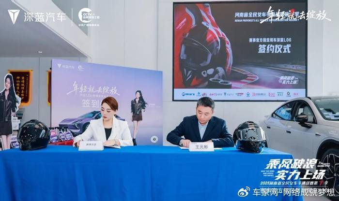 11月24日,一场简洁却意义深远的签约仪式在郑州举行。深蓝汽车与全民女车手挑战赛组委会正式达成合作,备受瞩目的深蓝L06成为河南省全民女车手挑战赛第7季赛事官方指定用车。