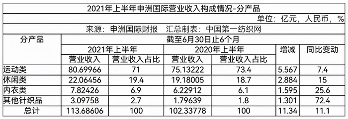 申洲国际集团控股有限公司(以下简称“申洲国际”)今天(8月26日)发布2021年半年报,报告期内,公司实现营业收入113.69亿元,同比增长11.09%,母公司拥有人应占净利润约为22.26亿元,同比下降约11.4%。