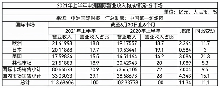 截至报告期末,欧洲市场的营业收入为21.41亿元,同比增长11.7%,主要系来自于欧洲市场的运动类服装采购需求上升所致。