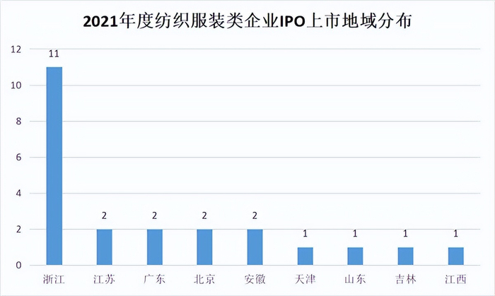 2021年度纺织服装类企业IPO上市地域分布情况