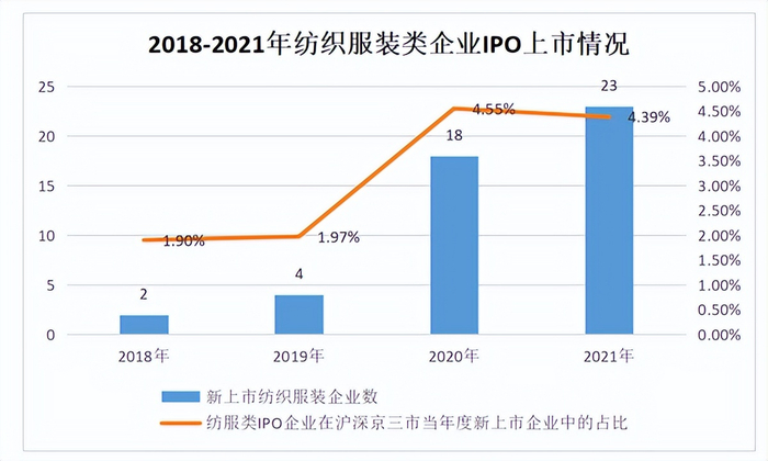 2018-2021年来纺织服装类企业上市情况