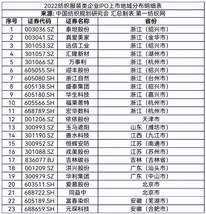 三、2021年纺织服装类企业IPO上市地域分布情况