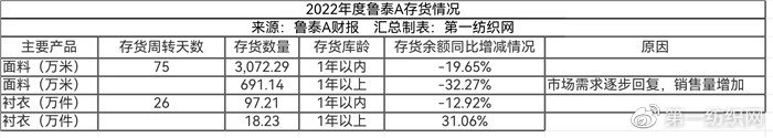 国信证券分析师丁诗洁此前指出,2022年订单趋势有望向好但需关注人民币升值的负面影响,报告期内,鲁泰A在订单增长、产能利用率恢复、人民币贬值等多方面利好因素促进下实现业绩大幅增长,反映行业不利因素正逐步消减,2023年订单趋势有望逐步向好且功能性面料投产将贡献新增长,从中长期看,产能扩张、效率提升、景气品类开拓有望贡献收入和业绩稳步增长,此外也需要看到,公司主要客户为海外高端服装品牌,预计其海外订单受影响程度小于同行且有望提前回暖,国内订单将受益疫后消费复苏。