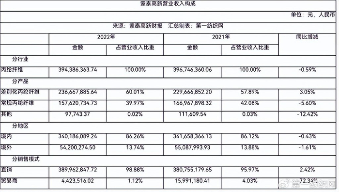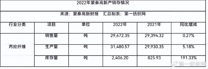 公开资料显示,蒙泰高新是专业从事聚丙烯纤维的研发、生产和销售的高新技术企业,公司客户主要为工业领域的工业滤布和民用领域的箱包、服装、水管布套、门窗毛条等纺织生产企业。根据中国化学纤维工业协会的统计,自2017年起,公司连续6年在国内丙纶长丝行业中的产量、市场占有率均排名第一。