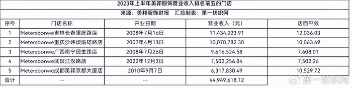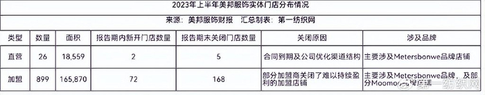 截止2023年6月30日止,美邦服饰直营店铺存量26家,营业面积总计18,559平方米,平均单店营业面积为714平方米,2023年1-6月实现平均单店营业收入385.21万元,平均年化坪效为10,793.23元/平方米/年。