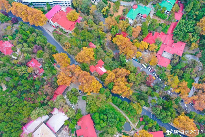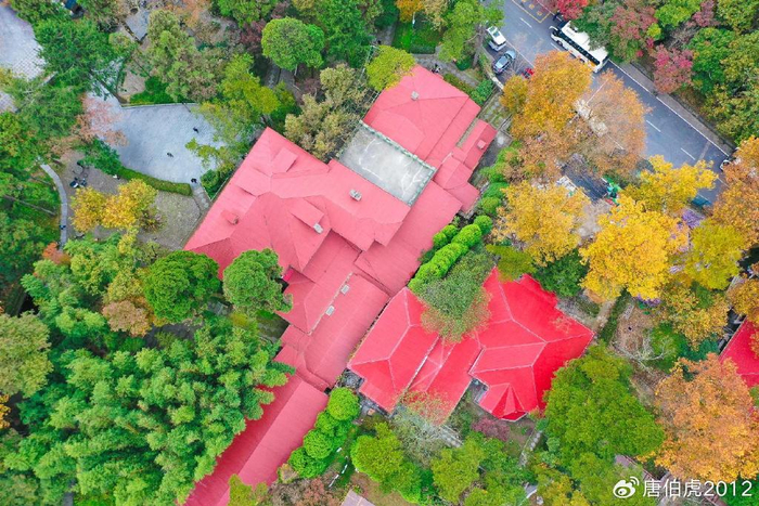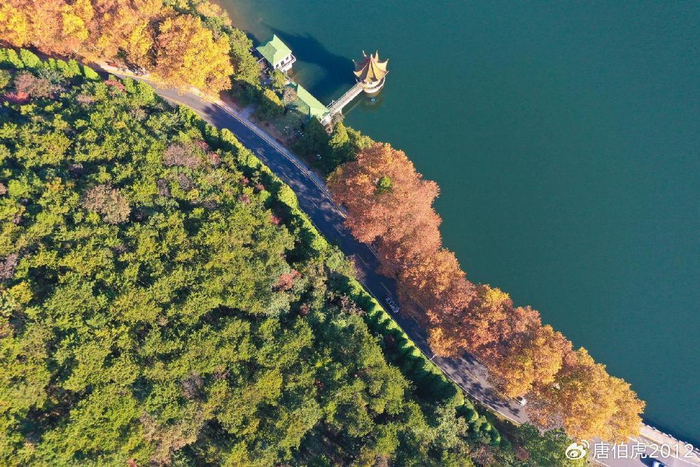 秋天的如琴湖是最美的时候,湖中有曲桥、亭榭、花径,花径又称“白司马花径”秋天的如琴湖,宁静得让人心醉,从无人机视角俯瞰这里的景色大红的屋顶,火红的枫树,金黄的梧桐树, 墨绿的苍松树,黛色的山峰。这所有美丽的颜色倒映在清澈的湖水中,仿佛是一幅宛若神巧的泼墨画跃然纸上。