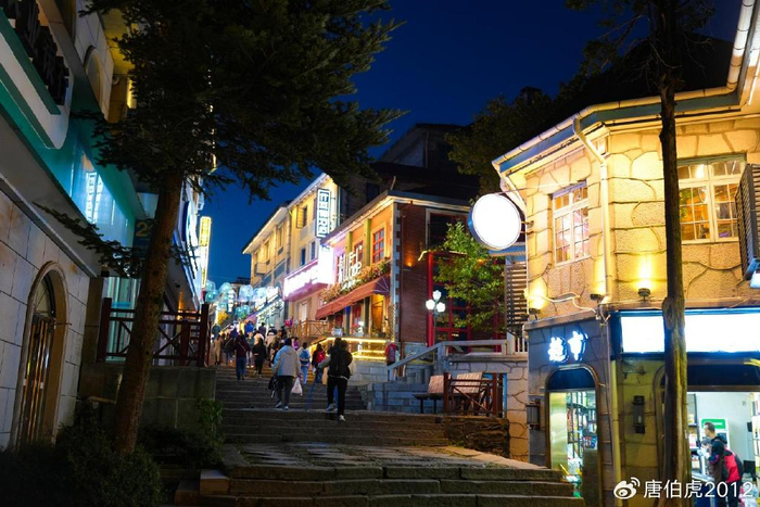 就在一个下坡的地方,晚上在这里拍照很出片。街道两边各处美食店,土特产,艺术品店到处都是。如果白天去爬山累了,晚上不妨来到这里逛逛街放松一下,是个不错的选择。