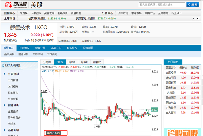箩筐技术公司2024年10月9日至今的股价走势 图源:同花顺美股网