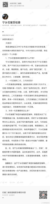 #十个勤天猪肉贺大姐回应# 贺大姐@宁乡花猪贺桂香 对宁乡花猪肉的回应来了!@十个勤天 帮助贺大姐销售一代花猪肉,由于肉质比较肥因此大家收到后有些许的疑惑。贺大姐针对大家关心的问题,给大家科普了一代花猪为什么肥肉较多,同时也感谢了大家的支持。字里行间里都透露着贺大姐的真诚,大家还是理性按需购买哦~[比耶]#种地吧#
