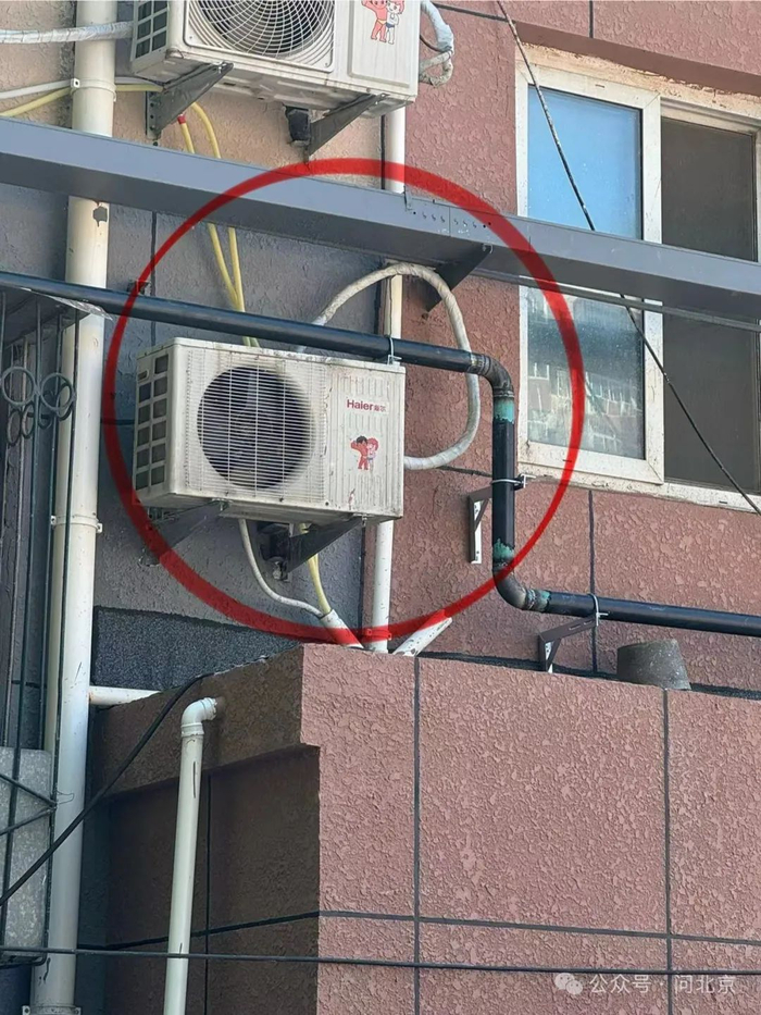 刘女士:这个空调室外机都零距离了,如果空调外机发生自燃,这个就很危险,一点都不安全。