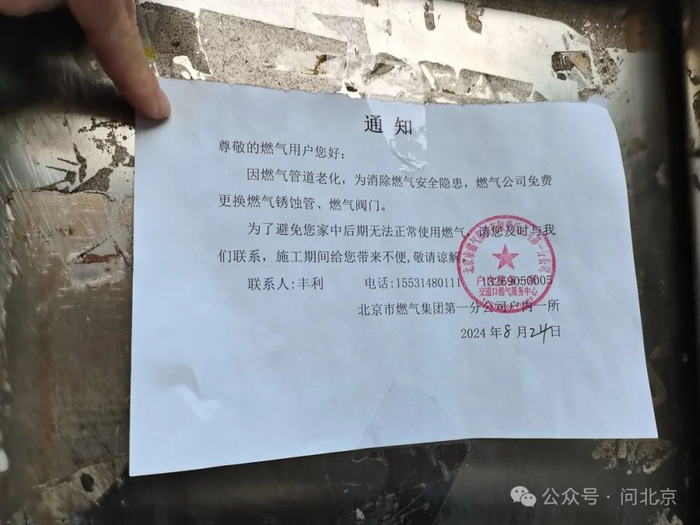 8月24日,燃气集团再次发布通知/蔡殊 摄孙先生也表示,燃气公司进行过入户调查,但是并非100%入户,只是入户20%到30%。那么,燃气公司有没有发布过入户调查的通知呢?孙先生表示: