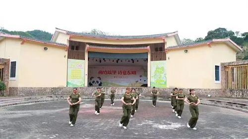 “师傅,这真是东明村?”出租车刚停在粤东潮州的群山脚下,来访者望着眼前景象便忍不住发问——竹林边的广场上,统一着装的村民们伴着轻快的音乐翩翩起舞;砖石铺就的步道旁,葳蕤的树木上挂着喜庆的红色灯笼……这分明是精心打理的郊野公园景致,实在难与乡村的传统印象划上等号。