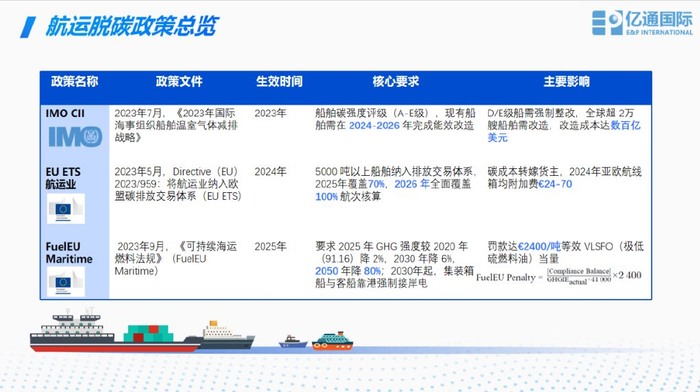 绿色合规压力:根据船舶AIS数据,38%的5000吨以上船舶曾挂靠欧盟港口。若没有及时进行船舶绿色转型,船东不仅需要承担飙升的碳配额采购成本,还可能面临€2400/吨(按极低硫燃料油当量核算)的燃料罚款,合规成本直接构成生存压力。