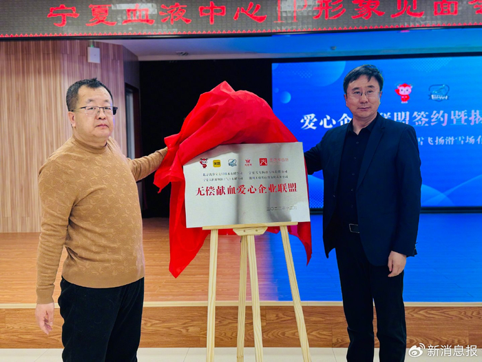 宁夏血液中心为无偿献血爱心企业揭牌。