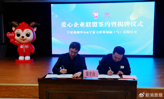 当天,宁夏血液中心与各地企业代表共同签署“爱心企业联盟”协议并为无偿献血爱心企业揭牌。