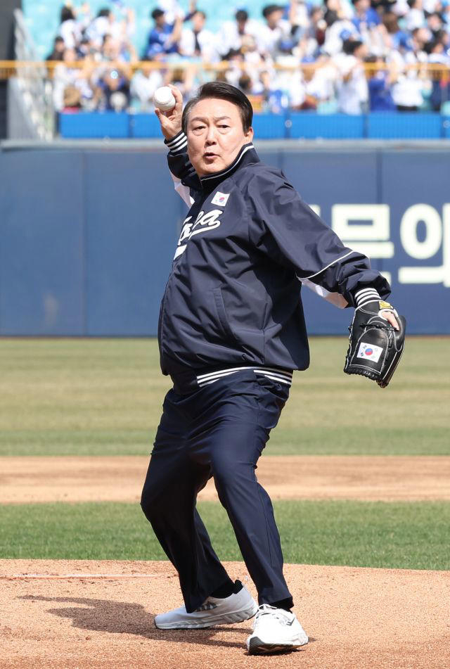本月1日,尹锡悦在韩国职棒联盟2023年常规赛季开幕赛上开球,为此,他赛前练习了很久。