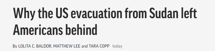 美联社:为什么美国政府从苏丹撤离时撇下了美国人“美国公民似乎只能自求多福”