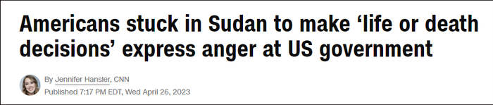 截至目前,仍有约1.6万名美国人滞留。如此做法,激怒了那些滞留在苏丹、渴望撤离但不得其法的美国人及其亲友,他们觉得自己“被抛弃了”。美联社27日发文质疑,“美国政府再三表示组织撤离太危险,但其他国家正在陆续撤离其国民”。