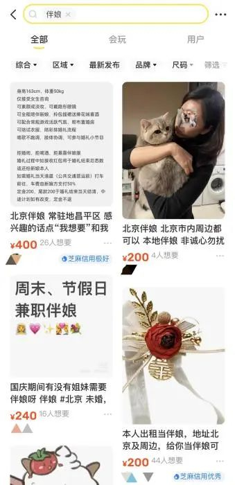 由于晚婚,徐宁(化名)临近“十一”婚期还没有找到伴娘,最终花500元租了一个。根据她的要求,伴娘不能太矮,也不能太高,还要合自己的八字,不能属牛属虎。即便徐宁有种种要求,也可以找到可以和自己相匹配的伴娘。