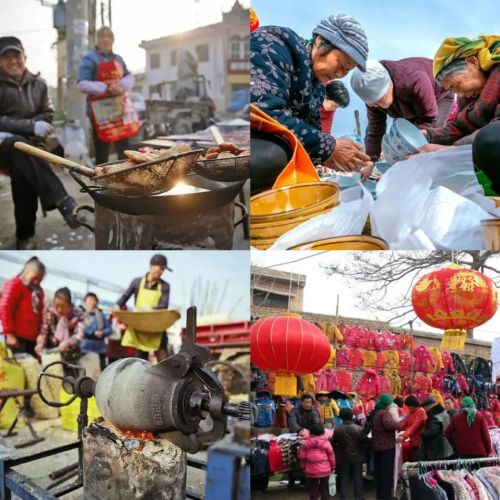 集市上的货品更是应有仅有,日用百货、衣服鞋子、新鲜瓜果、鸡鸭鱼鹅、点心零食......还有画糖画的、吹糖人的、捏面人的民间大神穿梭其中。遇上重要节庆,赶集还能看到舞龙舞狮、魔术杂技,整个乡村都沸腾了起来,生意人鼓起了口袋,农民也得到了方便和实惠,两全其美。