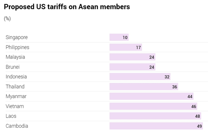 特朗普计划对东盟成员国加征的关税。《南华早报》制图作为西方外交政策的长期批评者,马哈蒂尔还指出,美国不断挑起与中国的对抗并使之升级,相当于发起了一场非传统意义上的“战争”。