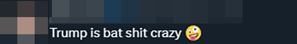 还有两名网友嘲讽称,“特朗普简直疯了”“如果全是坏部分怎么办”。