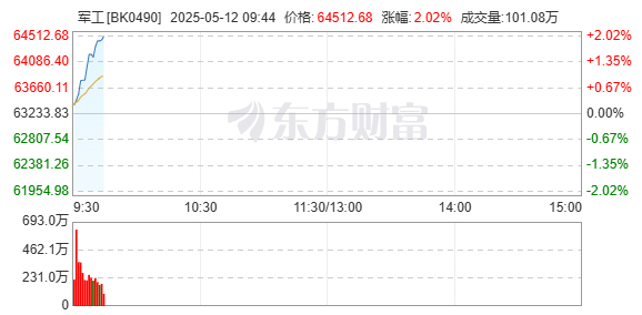 开盘后,军工板块快速拉升,中超控股、苏州龙杰、天箭科技、成飞集成、贵航股份涨停,航天南湖、中航成飞纷纷拉升。