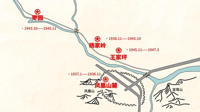 党中央毛主席进驻延安后,第一个驻地是凤凰山麓,在延安北门内,1937年1月入驻,1938年11月20日因日军飞机轰炸延安,炸弹直接扔到了中央机关驻地,为安全起见连夜迁走,住凤凰山时间约1年零10个月。