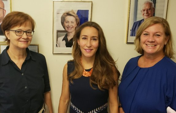 伊娃·瓦莱·拉加雷斯(中) 欧盟资料图“实际上,这可能是各种因素的混合体,”瓦莱·拉加雷斯说,“我们正在寻找一个更具结构性、更可靠的长期解决方案。”她表示,欧洲希望中方在明年4月之前恢复稀土磁铁的开放流通。或者作为“后备方案”,中方对与军方没有关联的欧盟公司给予出口豁免。