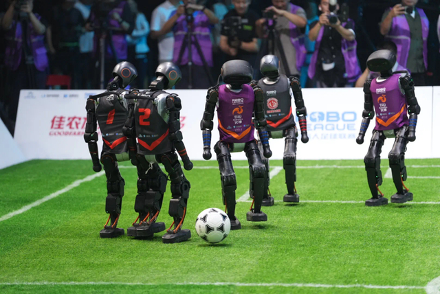 机器人足球赛,不只是为了踢足球。中国的人形机器人足球选手能够依靠AI自主完成足球比赛,代表着机器人能够自主执行较为复杂的功能。