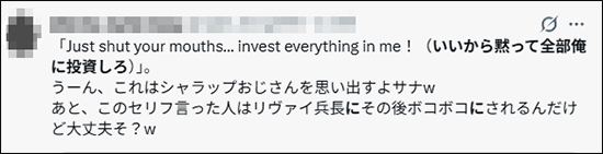 此外,很多日本御宅族在看到报道后觉得高市莫名其妙,“不知道高市说这话是想做什么?主人公放这话的时候可是被狠揍了一顿。”